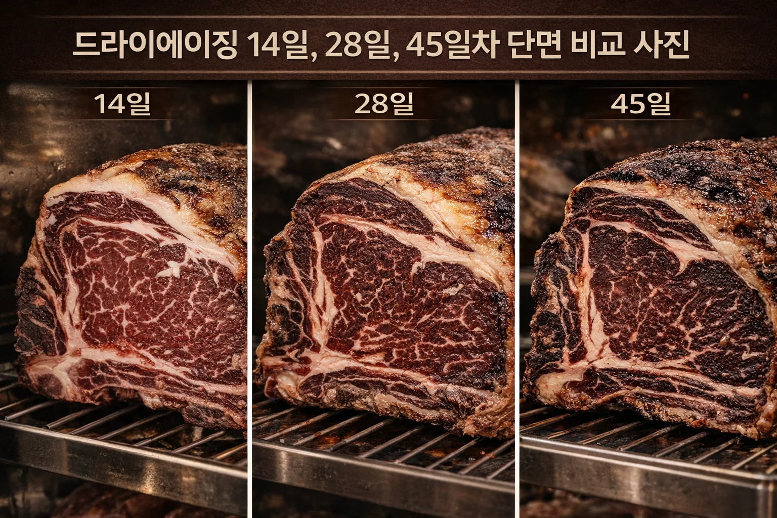주로 드라이에이징, 즉 건식 숙성을 통해 수분을 날리고 풍미를 응축시킵니다.