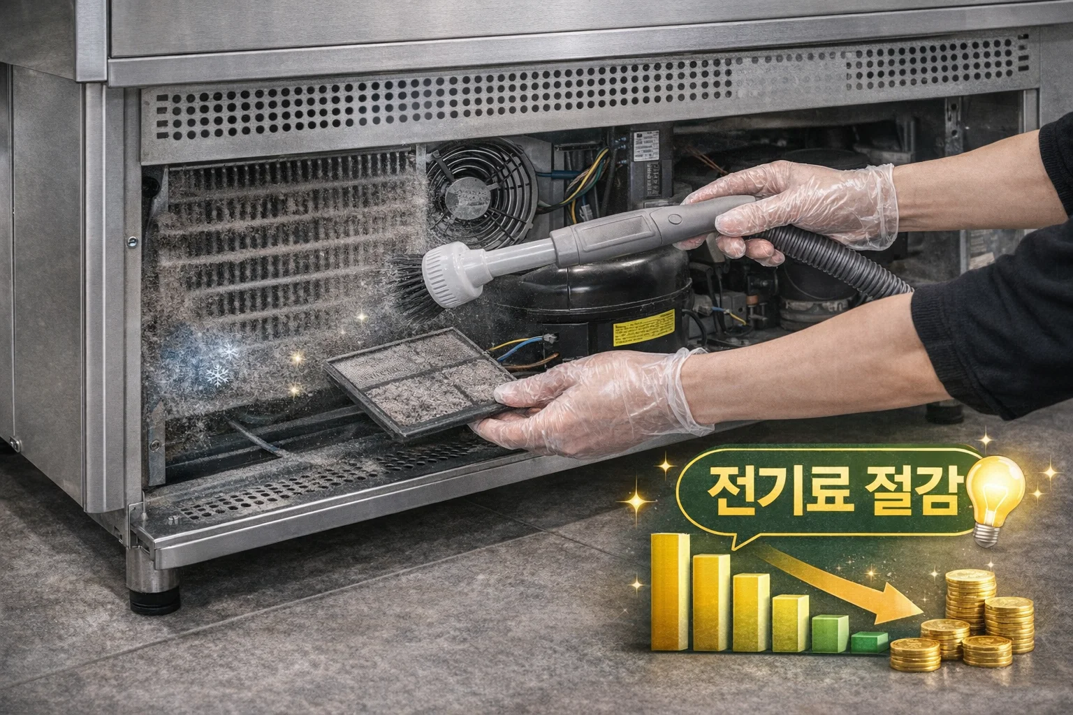 가장 중요한 것은 응축기 청소입니다. 냉장고 하단이나 측면에 있는 먼지 필터를 한 달에 한 번만 털어줘도 컴프레서 과열을 막아 수명을 2배 이상 늘릴 수 있습니다.