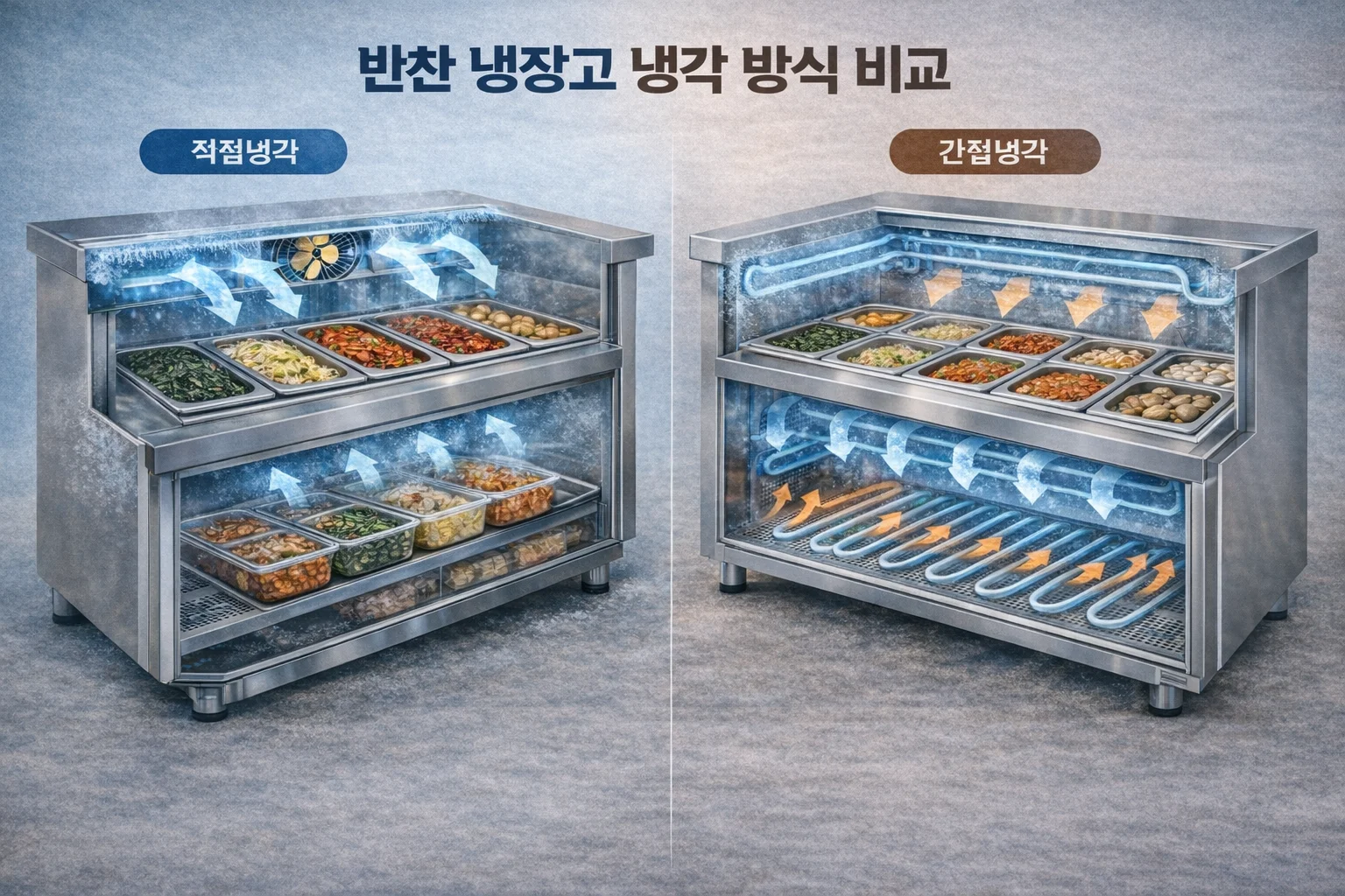 메뉴가 수분이 많은 무침류인지, 아니면 온도 유지가 중요한 육류 중심인지에 따라 냉각 방식을 신중히 결정해야 합니다.