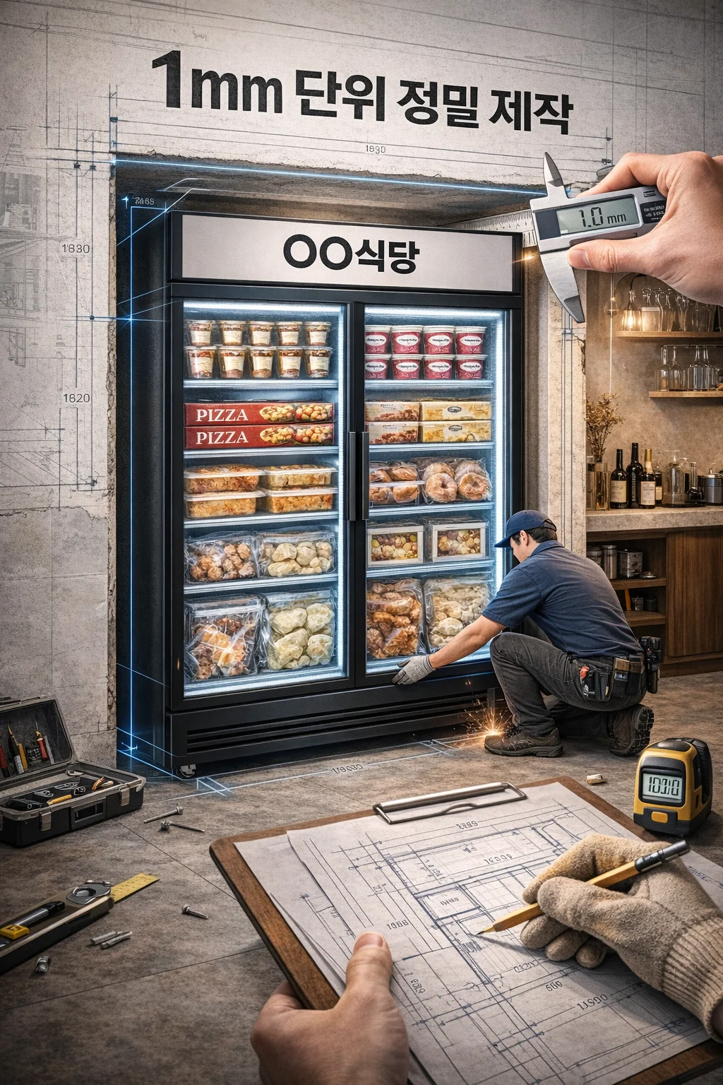 특히 협소한 주방 동선에서는, 천편일률적인 디자인의 냉동고보다 매장의 정체성을 살린 맞춤형 쇼케이스가 훨씬 강력한 무기가 되곤 합니다.