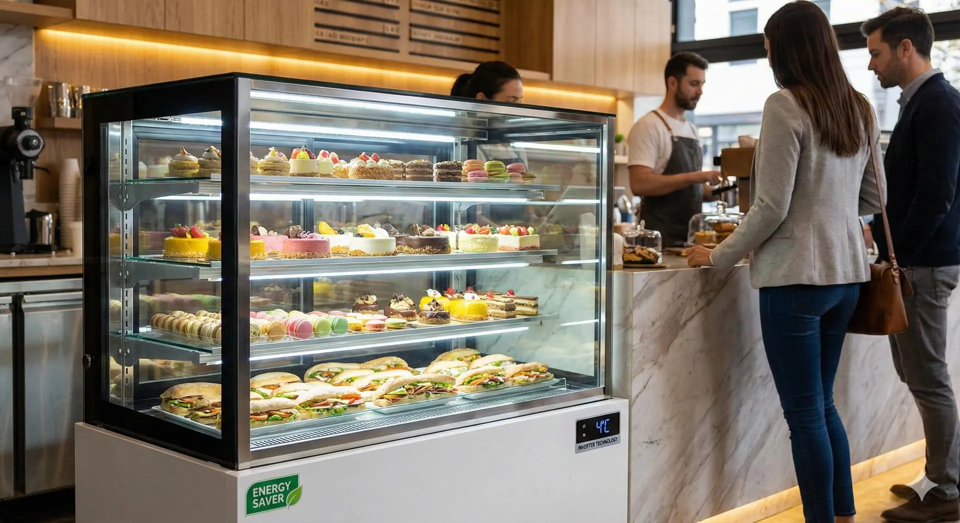 신뢰도 상승: 내부가 훤히 들여다보이는 쇼케이스 냉장고는 식재료의 신선도를 고객이 직접 눈으로 확인할 수 있게 함으로써 매장에 대한 신뢰도를 높여줍니다.