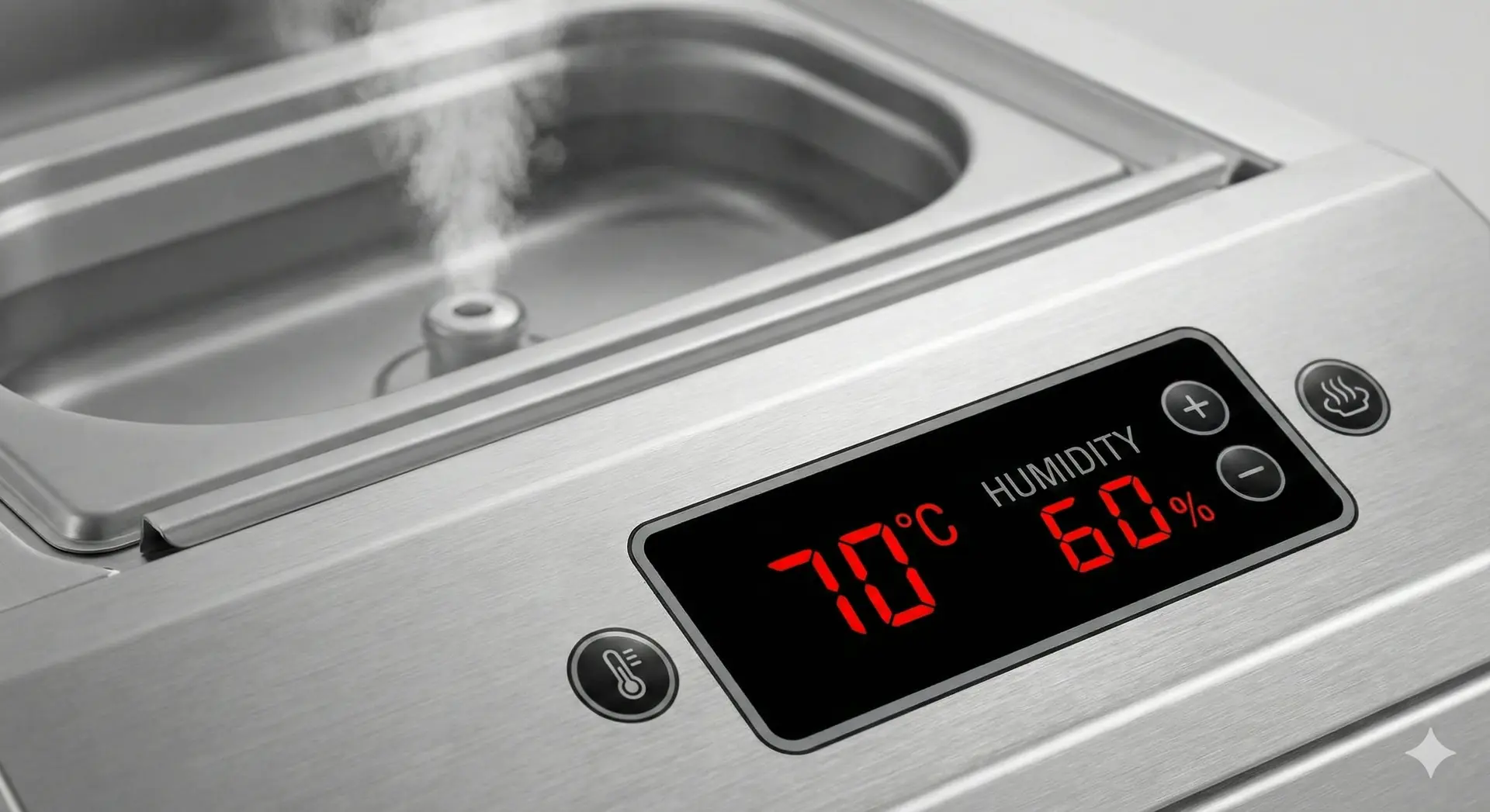 습식(수조 가열 방식) 반찬온장고: 하단 수조의 물을 데워 발생하는 수증기로 온도를 유지합니다. 국물이 있는 조림, 찜, 볶음 요리에 최적이며 음식이 마르는 것을 완벽하게 방지합니다. 반찬 가게에서 가장 선호하는 방식입니다.