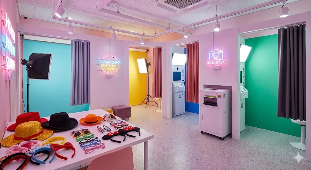 서비스형(무인 사진관, 코인 빨래방, 무인 카페): 기계 설비가 일을 하는 구조입니다. 기계의 성능과 브랜드 인지도가 매출에 큰 영향을 미치며, 감성적인 인테리어가 필수적인 무인 창업 아이템들입니다.