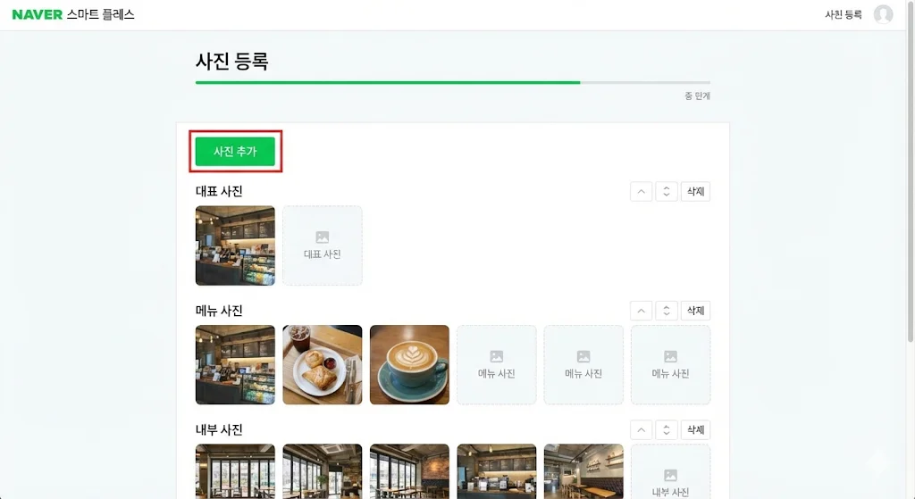 대표 사진의 품질: 첫 번째 사진은 무조건 '가장 먹음직스러운 음식'이나 '가장 세련된 인테리어' 사진이어야 합니다. 아마추어가 대충 찍은 사진보다는 가급적 전문적인 느낌이 나는 고화질 사진을 배치하세요.