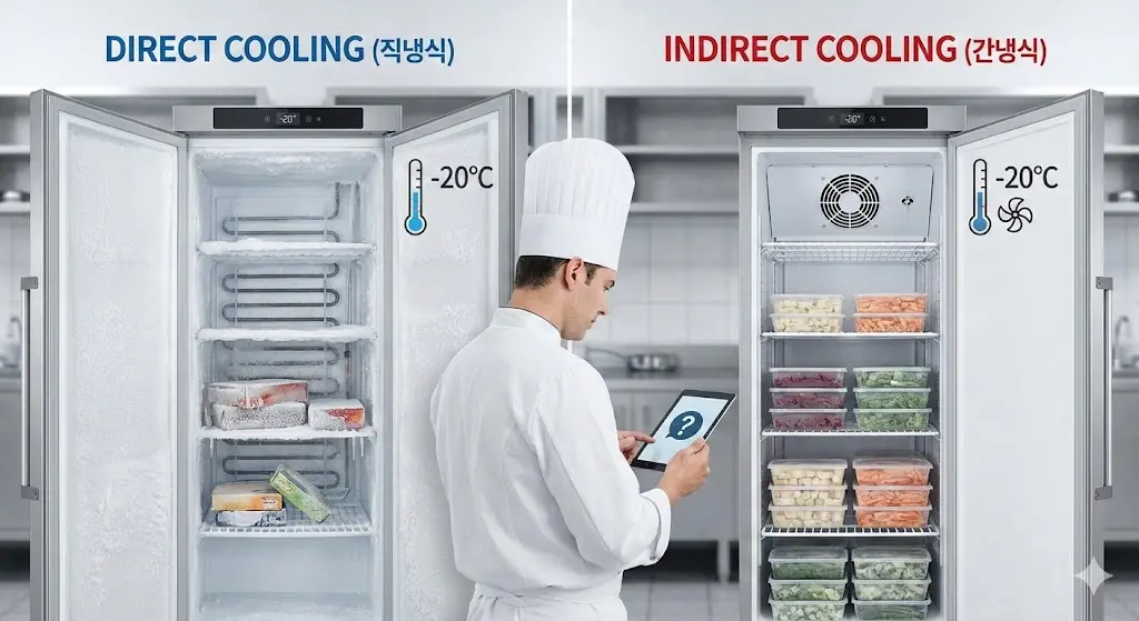 ❄️ 2. 직냉식과 간냉식: 우리 매장에 맞는 수직 냉동고는?