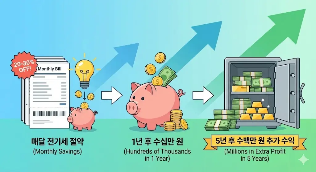 μ§κΈ λΉμ₯ ν° λΉμ©μ΄ λκ°λ κ²μ΄ λΆλ΄μ€λ¬μΈ μ μμ§λ§, μ₯κΈ°μ μΈ κ³ μ λΉ μ§μΆμ μκ°νλ©΄ μ΄λ² μ§μ μ¬μ μ νμ©νλ κ²μ΄ κ°μ₯ νλͺ ν ν¬μμ λλ€. λ§€λ¬ λκ°λ μ κΈ°μΈλ₯Ό 20~30%λ§ μ€μ¬λ 1λ μ΄λ©΄ μμλ§ μ, 5λ μ΄λ©΄ μλ°±λ§ μμ μΆκ° μμ΅μ΄ λ°μνλ κ²κ³Ό λ€λ¦μκΈ° λλ¬Έμ λλ€.