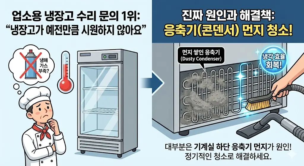 μ μμ© λμ₯κ³ μ리 λ¬Έμ μ€ μλμ μΈ 1μλ λ°λ‘ "λμ₯κ³ κ° μμ λ§νΌ μμνμ§ μμμ"λΌλ μ¦μμ λλ€. μ΄λ΄ λ μ¬μ₯λλ€μ λλ§€ κ°μ€κ° λ€ λ¨μ΄μ§ κ² μλκ° κ±±μ νμμ§λ§, λλΆλΆμ μμΈμ κΈ°κ³μ€ νλ¨μ μμΆκΈ°(μ½λ΄μ)μ μμΈ λ¨Όμ§μ λλ€.