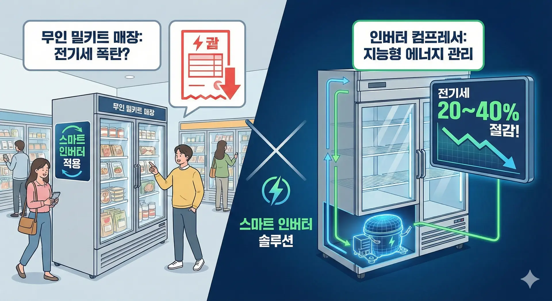 무인 매장 운영비 중 임대료를 제외하고 가장 큰 비중을 차지하는 것이 바로 전기세입니다. 쇼케이스는 1년 365일 가동되므로 에너지 효율이 수익률과 직결됩니다.