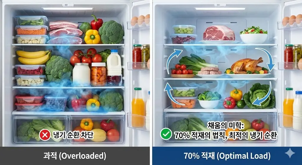📏 2. 채움의 미학: 냉기 순환을 돕는 '70% 적재의 법칙'