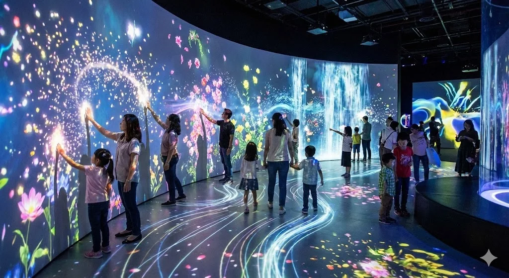 인터랙티브 존(Interactive Zone): 동작 인식 센서를 활용한 미디어 아트나, 자신의 목소리를 시각화해 보여주는 기술 등을 접목해 흥미를 유발합니다.