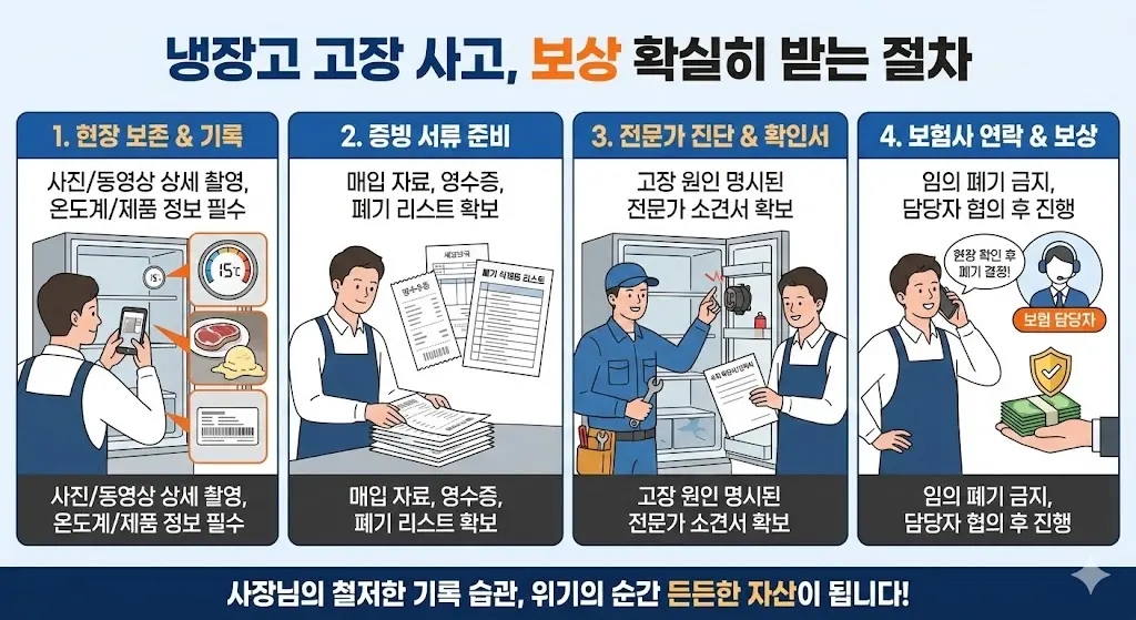단, 장비의 노후화로 인한 자연스러운 성능 저하나 사장님의 관리 소홀(문 열어둠 등)로 인한 사고는 보상에서 제외될 수 있으니 약관을 잘 살펴야 합니다. 또한 정기적인 점검 기록이 있다면 보험금 청구 시 사장님의 관리 노력을 증명하는 유리한 자료로 쓰일 수 있으니 점검 일지를 작성하십시오.