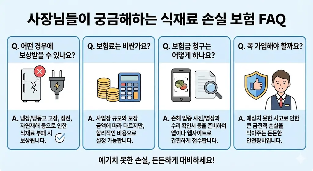 ❓ 3. 사장님들이 궁금해하는 식재료 손실 보험 FAQ