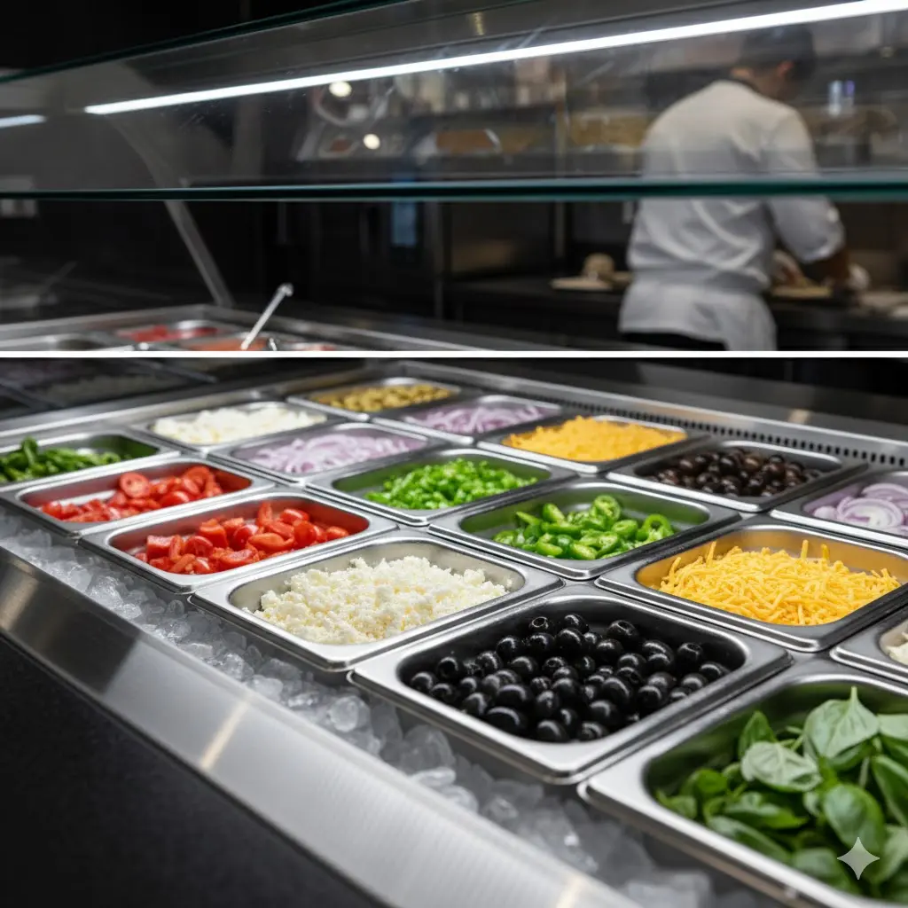 이걸 줄이는 게 업소용 토핑 냉장고의 본질이에요.