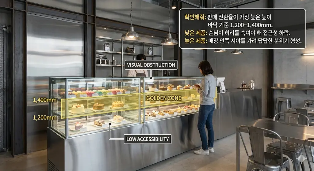 판매 전환율이 가장 높은 높이: 바닥 기준 1,200~1,400mm