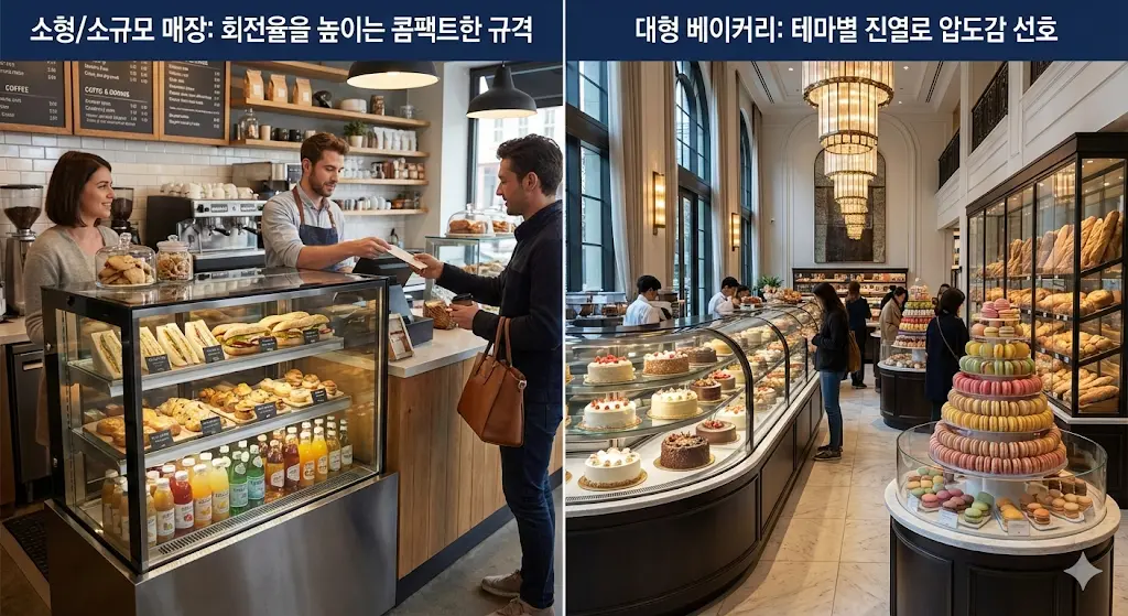 대형 베이커리: 테마별 진열대 분리를 통한 시각적 압도감 선호
