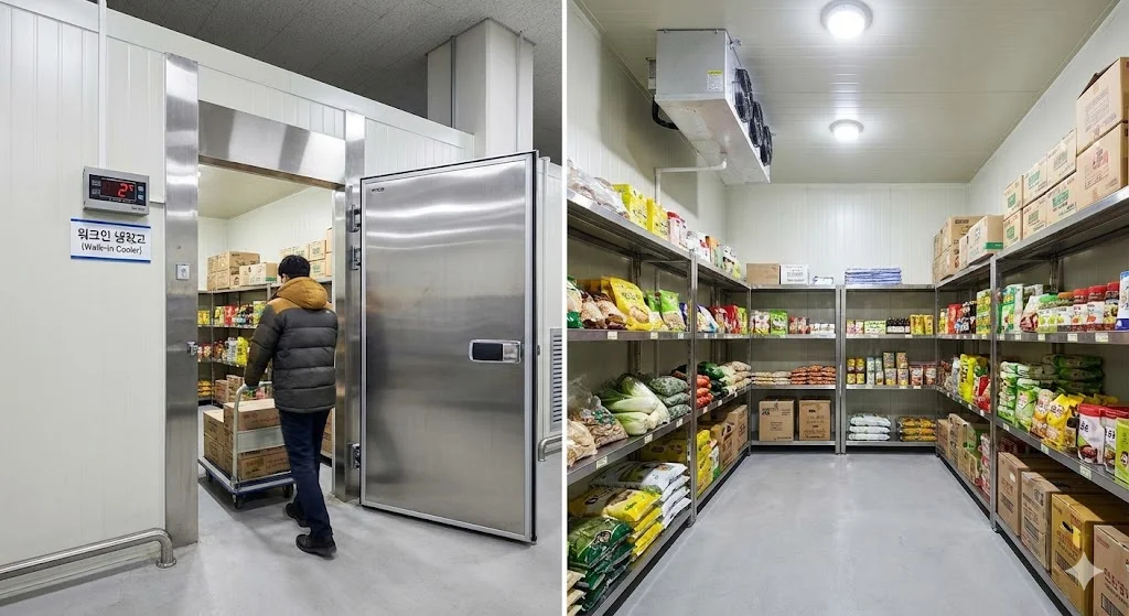 ์ฌ๋์ด ์ง์ ๊ฑธ์ด ๋ค์ด๊ฐ๋ ์ํฌ์ธ(Walk-in) ๋ฐฉ์์ธ ๋งํผ, ๋์ด์ ์์น๋ ์ฃผ๋ฐฉ์ด๋ ์์ฐจ์ฅ๊ณผ ๊ฐ์ฅ ๊ฐ๊น์ด ๋์ ์ ๋ฐฐ์นํ์ฌ ์์ ์์ ๋ ธ๋ ๊ฐ๋๋ฅผ ์ค์ฌ์ฃผ์ญ์์ค. ๋ด๋ถ ์กฐ๋ช ์ ์ํ์ ๊ธฐ์จ์์๋ ์ฆ๊ฐ ์ผ์ง๊ณ ์ด ๋ฐ์์ด ์ ์ ๋ฐฉ์ตํ LED ์กฐ๋ช ์ ์ค์นํ์ฌ, ์ด๋์ด ๊ตฌ์ ์์ด ์์ฌ๋ฃ๋ฅผ ํ๋์ ํ์ ํ ์ ์๊ฒ ํด์ผ ํฉ๋๋ค.