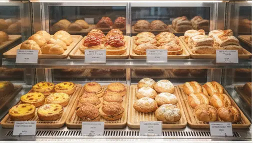 오래된 제품을 앞쪽에, 새로 만든 제품은 뒤쪽에 배치하는 FIFO(선입선출) 원칙을 철저히 지켜야 합니다. 또한, 진열대를 너무 꽉 채우기보다 적당한 여백을 두어 제품들이 돋보이도록 하는 것이 좋습니다.