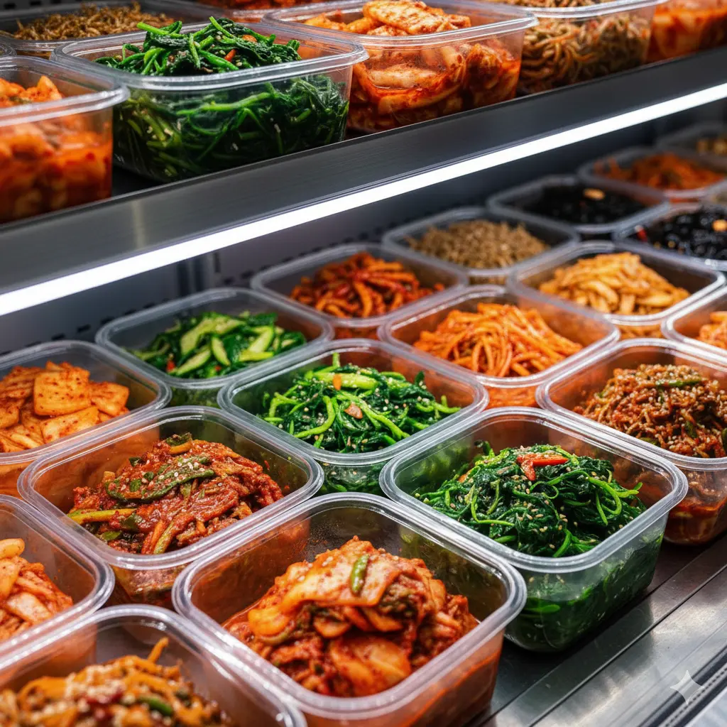 알록달록한 나물과 윤기 흐르는 조림류가 투명한 유리 너머로 정갈하게 보일 때 고객의 구매 욕구는 상승합니다.