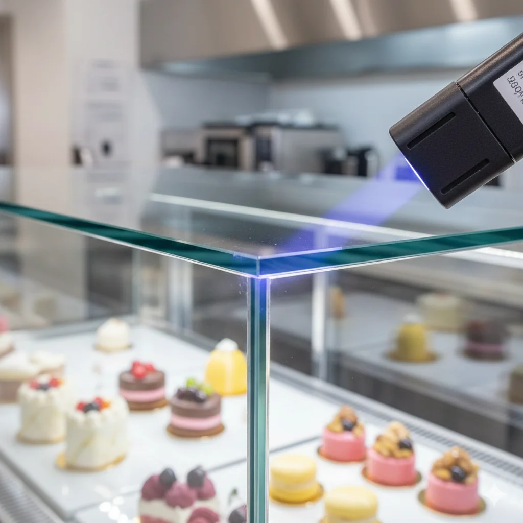 여기에 투박한 실리콘 마감 대신 특수 접착제를 자외선으로 경화시키는 'UV 접합 공법'을 적용하면, 이음새가 거의 없는 일체형 유리 쇼케이스가 완성됩니다.