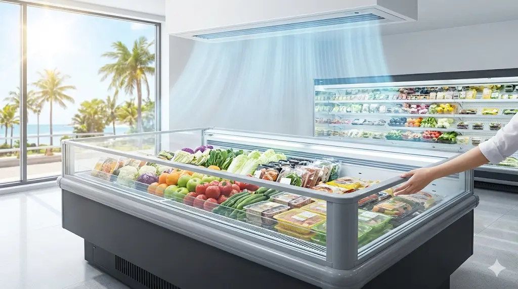오픈형 평대 모델을 고민하시는 사장님들이 가장 걱정하시는 부분이 바로 "냉기가 다 빠져나가지 않을까?" 하는 점일 겁니다.
