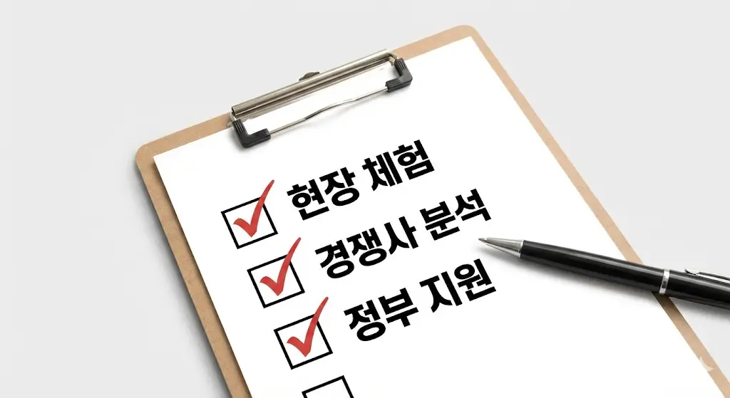 가장 위험한 것은 아무런 데이터 없이 '느낌'만으로 소자본창업 업종을 선택하는 것입니다. 시작하기 전에 반드시 거쳐야 할 검증 단계가 있습니다.
