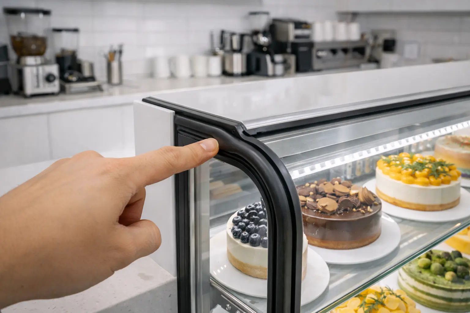 쇼케이스 유리에 물방울이 맺혀서 안이 안 보이면 정말 답답하죠. 디저트가 예쁘게 보여야 팔리는데 말이에요. 이걸 방지하려면 페어 유리인지, 열선 기능이 포함되어 있는지를 확인해야 해요.