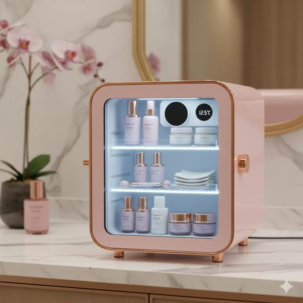 최적 온도: 일반 냉장고는 0~4°C를 유지하지만, 화장품 쇼케이스는 보통