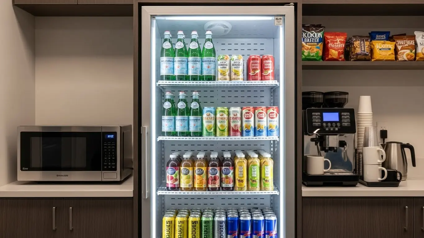 또한, 정돈된 음료와 간식이 예쁜 조명 아래 진열된 모습은 직원들에게 "우리 회사가 복지에 신경을 쓰고 있구나"라는 인상을 줍니다.