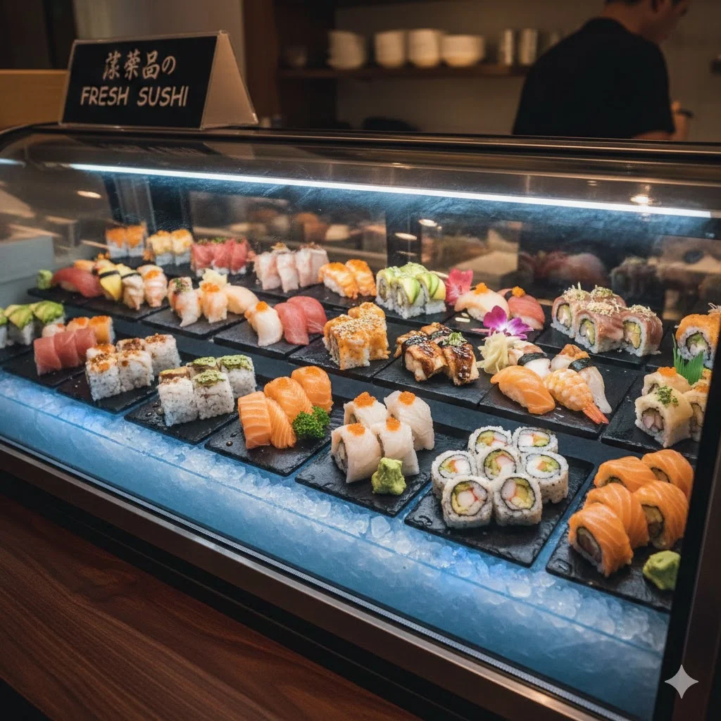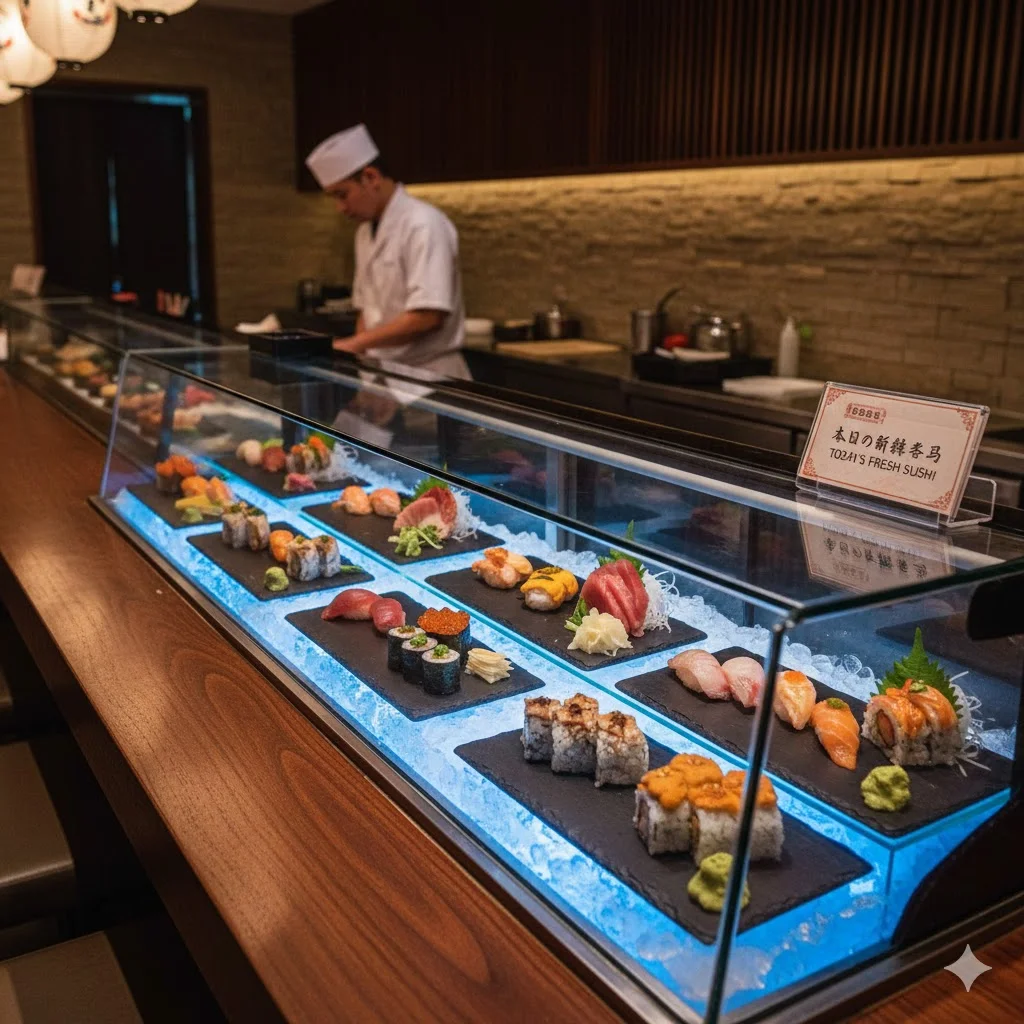 스시용 진열은 일반 냉장보다 상대적으로 높은 습도 유지가 유리합니다.