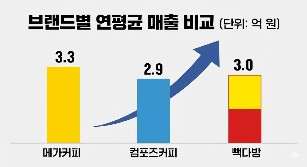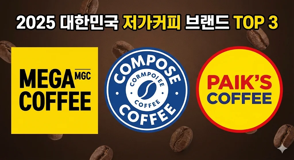 저가커피 순위 매출 분석: 메가커피·컴포즈·빽다방 브랜드별 수익 구조 비교