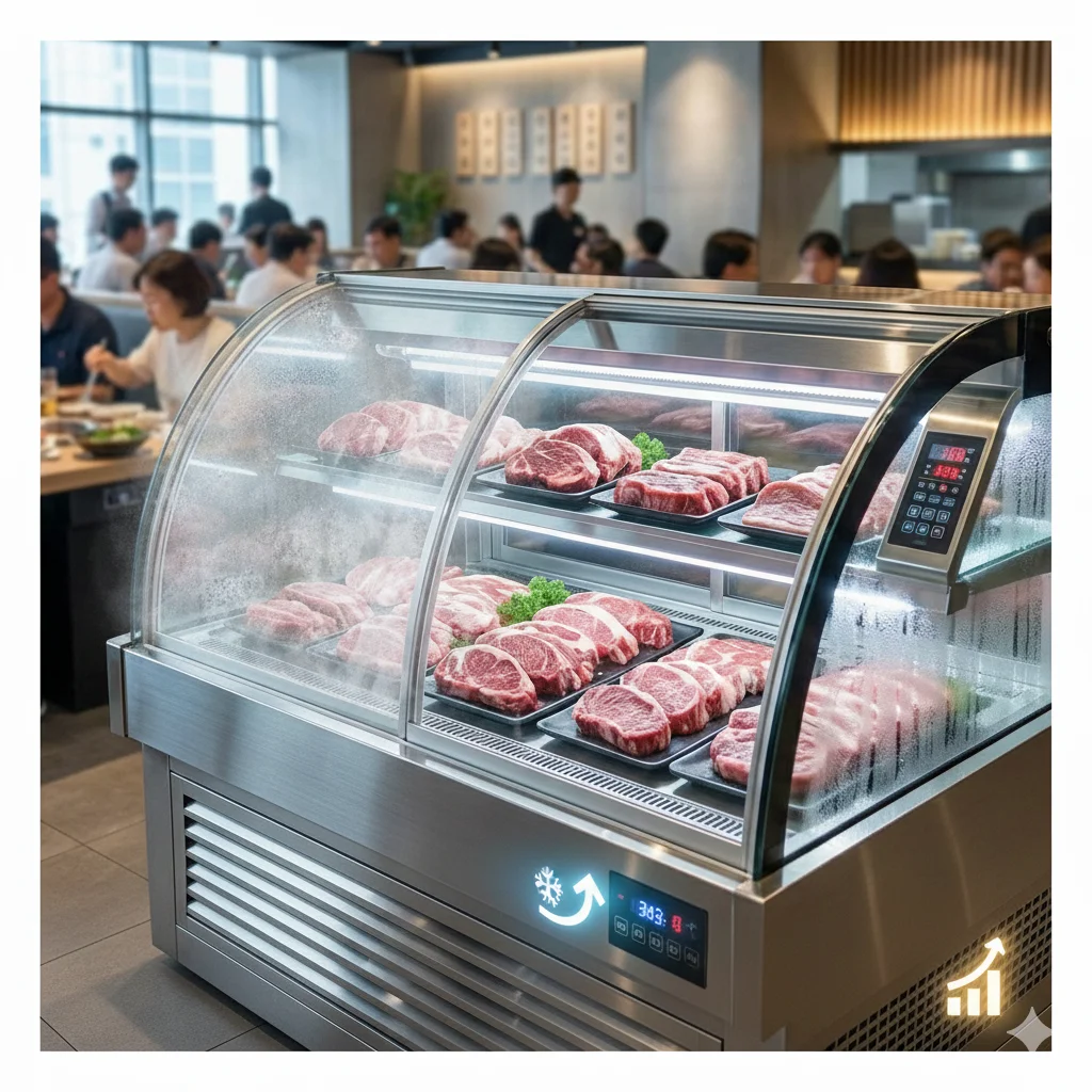 고기 무한리필 매장에서 쇼케이스는 단순히 상품을 담아두는 가전제품이 아닙니다. 그것은 사장님의 정성을 고객에게 증명하는 '품질의 기준'이자 매출을 만드는 '수익 시스템'입니다.