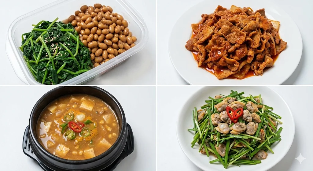 국·찌개 및 탕류 (20%): 한국인의 식탁에서 빠질 수 없는 국물 요리입니다. 매일 종류를 바꿔가며 '오늘의 국' 형태로 운영하는 것이 효과적입니다.