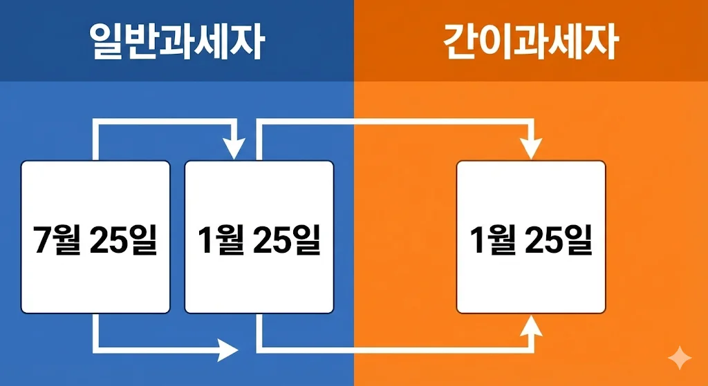 부가가치세는 개인사업자 세금 신고 일정 중 가장 자주 돌아오는 중요한 세금입니다. 하지만 내가 '일반과세자'인지 '간이과세자'인지에 따라 신고 횟수와 시기가 완전히 다릅니다.