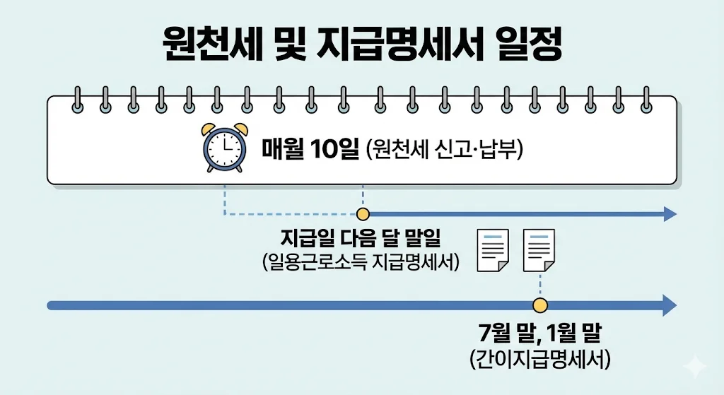 직원이 생기는 순간 사장님은 '원천징수의무자'가 되어 또 다른 개인사업자 세금 의무가 생깁니다. 이는 매달 돌아오는 루틴입니다.