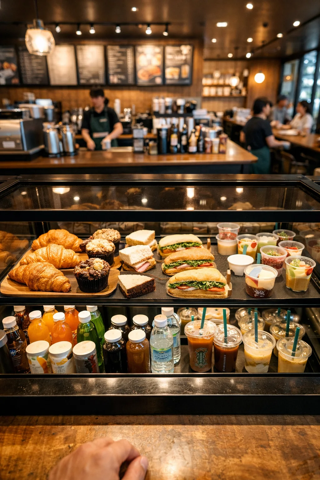 답은 의외로 간단해요. 시각적 편안함 때문이죠. 스타벅스에서 사용하는 쇼케이스는 보통 높이가 낮게 설계되어 있어요. 전문 용어로 저형 쇼케이스라고도 부르는데요.