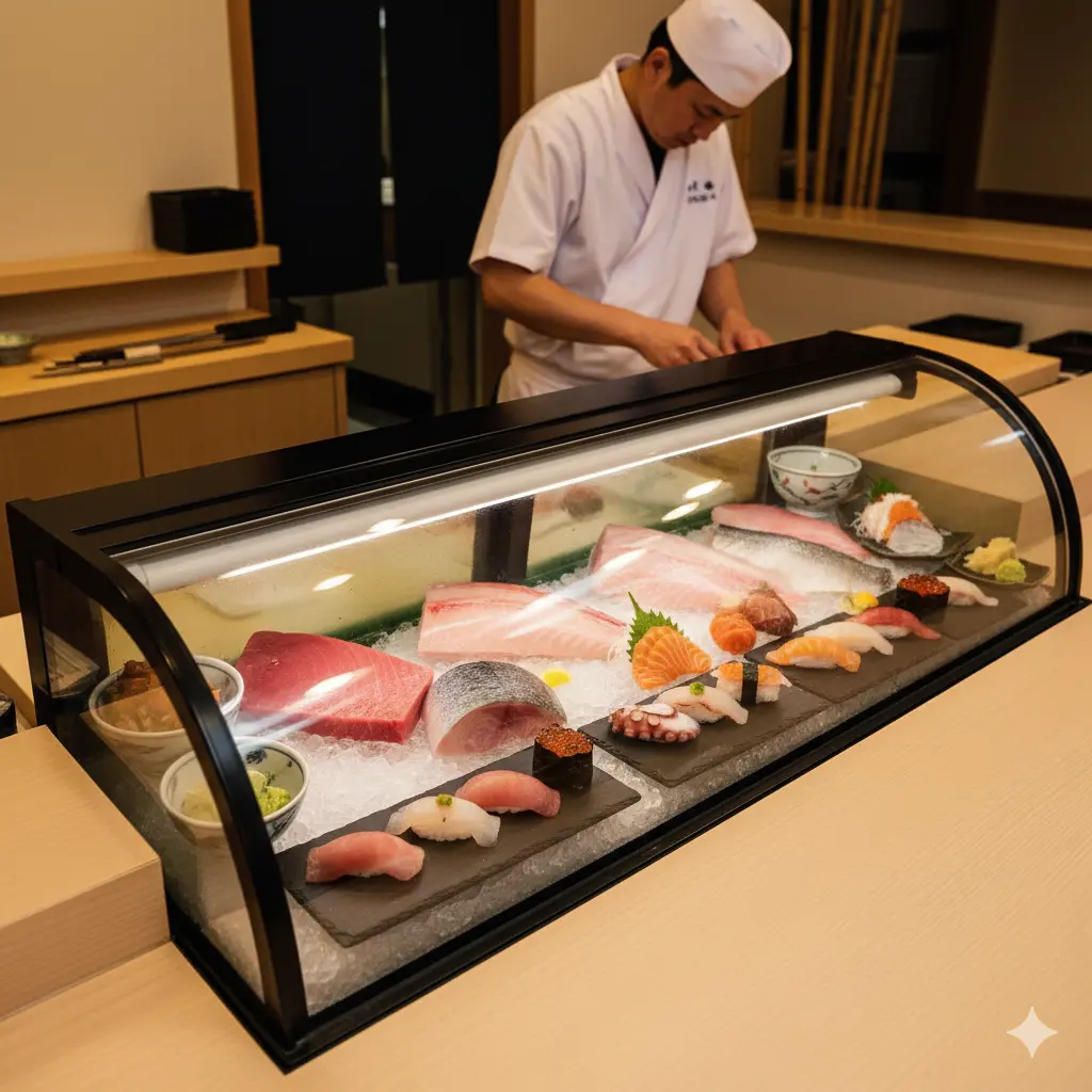 를 유지해야 하는 스시 전문점에서 일식쇼케이스는 매장의 심장과도 같습니다. 다찌(카