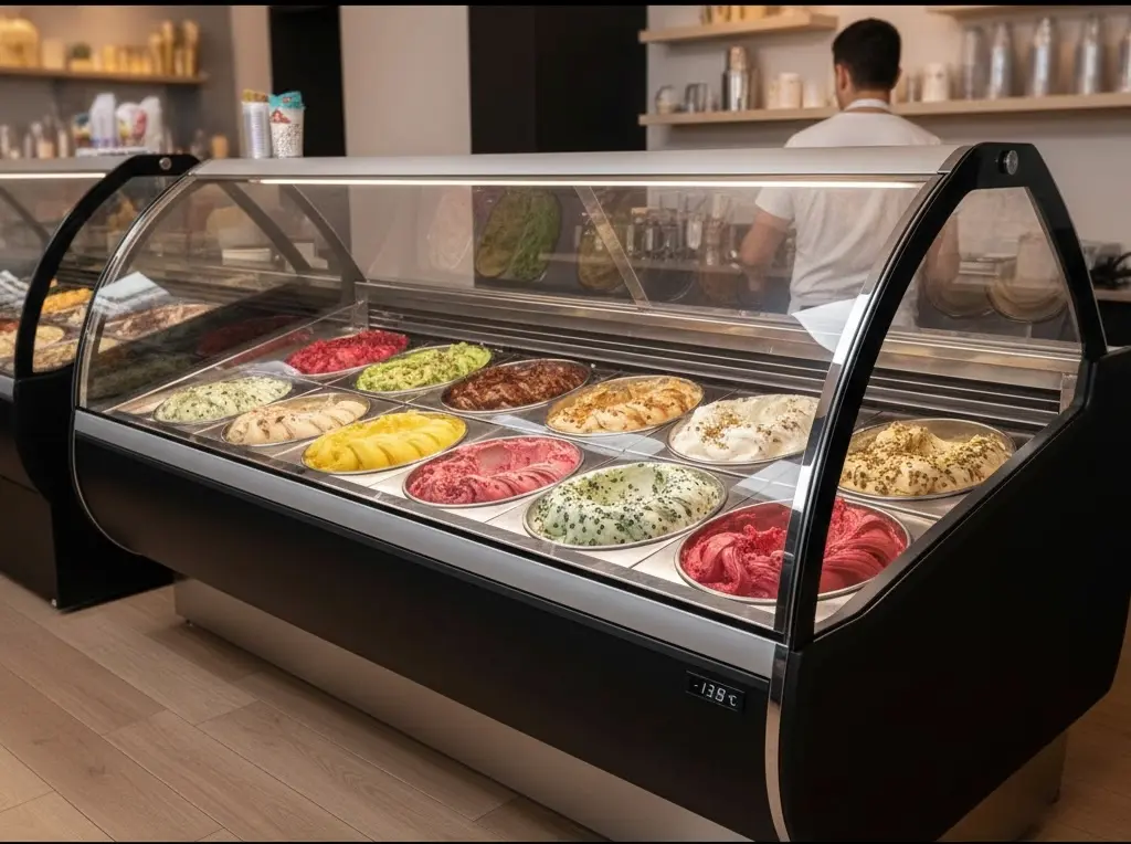 하게 설계되어 있어, 전시된 젤라또가 녹지 않으면서도 내부 코일에 생기는 얼음은 효과