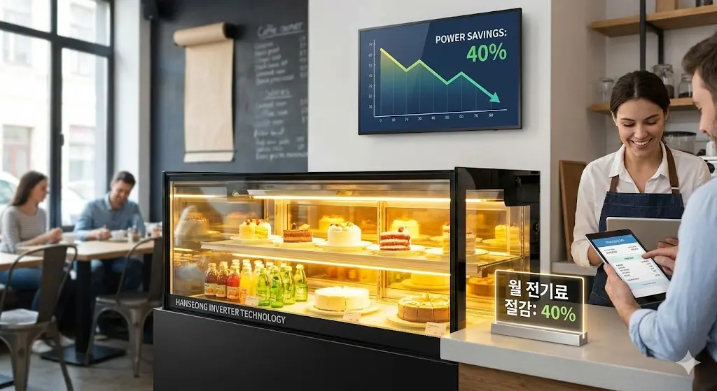 한성 습도 조절 반찬쇼케이스: 반찬이 마르는 건 사장님들의 치명적인 고민이죠. 한성만의 정밀 습도 제어 기술은 갓 만든 반찬의 촉촉함을 하루 종일 유지해 줍니다.