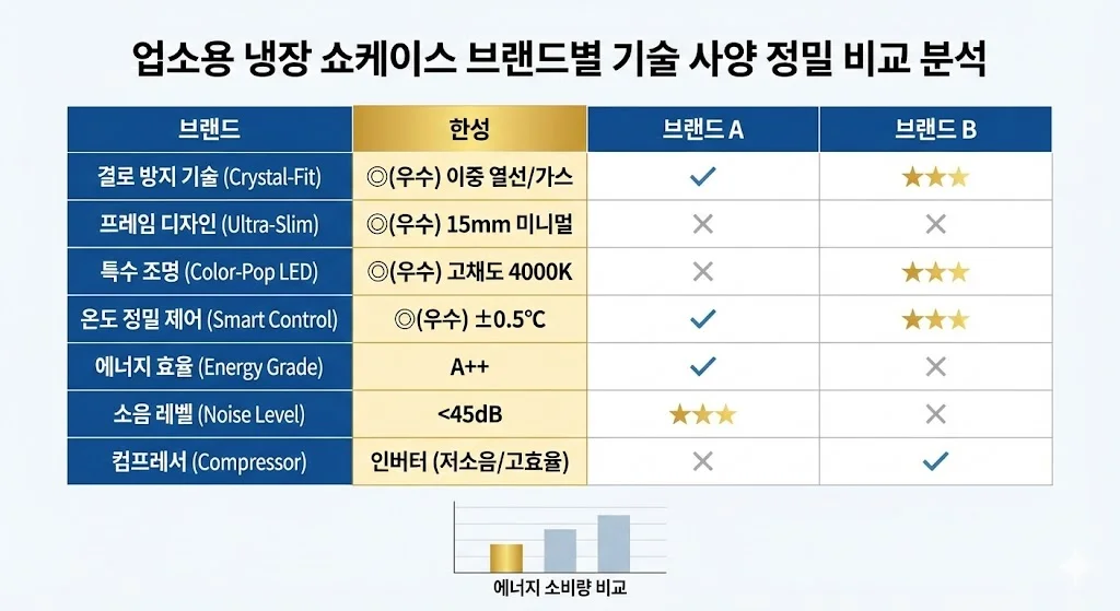 📊 업소용냉장쇼케이스 브랜드별 기술 사양 비교 분석