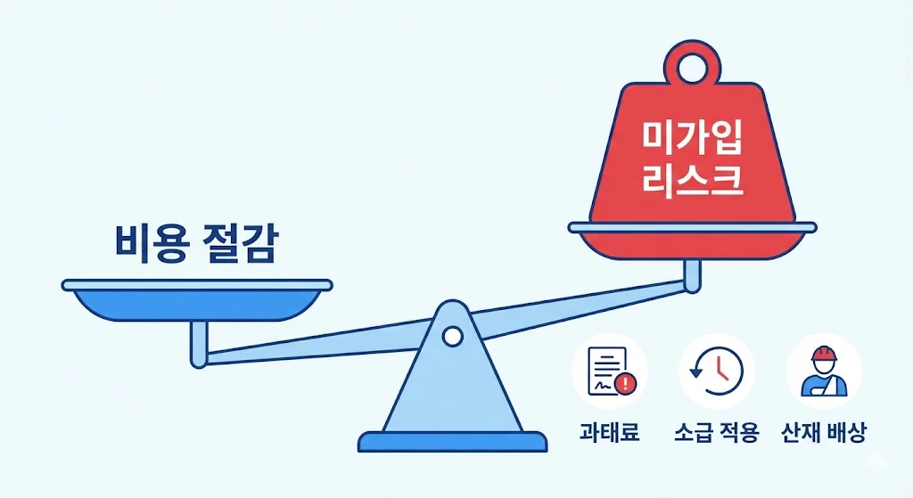 가장 치명적인 리스크는 바로 산재 사고입니다. 자영업자 4대 보험 중 산재보험에 가입하지 않은 상태에서 사고가 발생하면 사장님은 '산재보험 미가입 재해' 책임을 지게 됩니다.