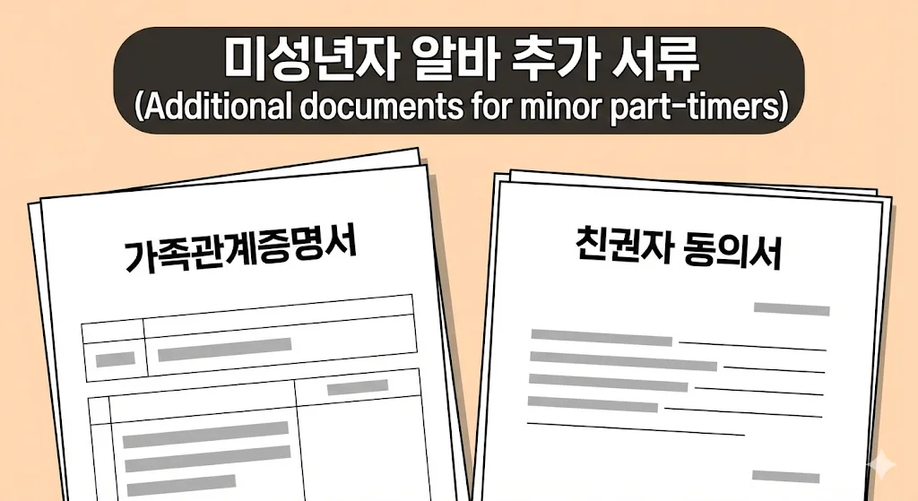 5. 미성년자(청소년) 알바생을 고용할 때 추가로 필요한 서류와 주의사항은 무엇인가요?