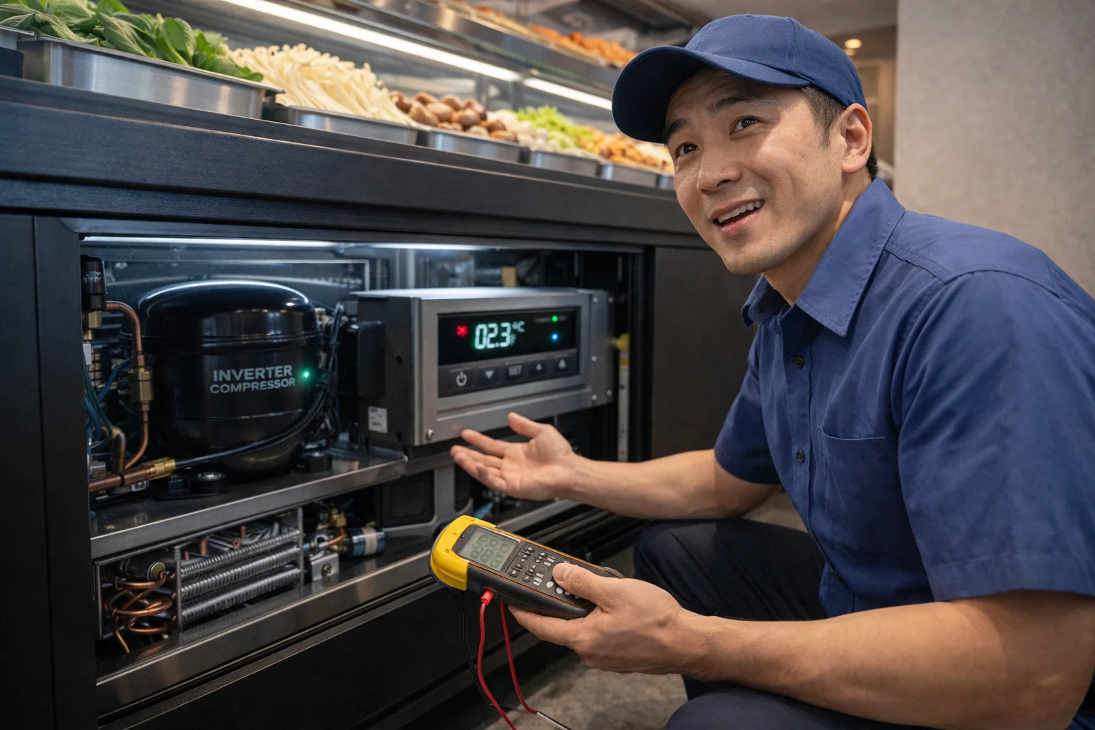 장사하다 보면 임대료만큼 무서운 게 바로 관리비죠. 특히 여름철 냉방비에 마라탕쇼케이스 전기세까지 합쳐지면 정말 답이 안 나올 때가 많아요. 여기서 핵심은 바로 '인버터 컴프레서'예요.