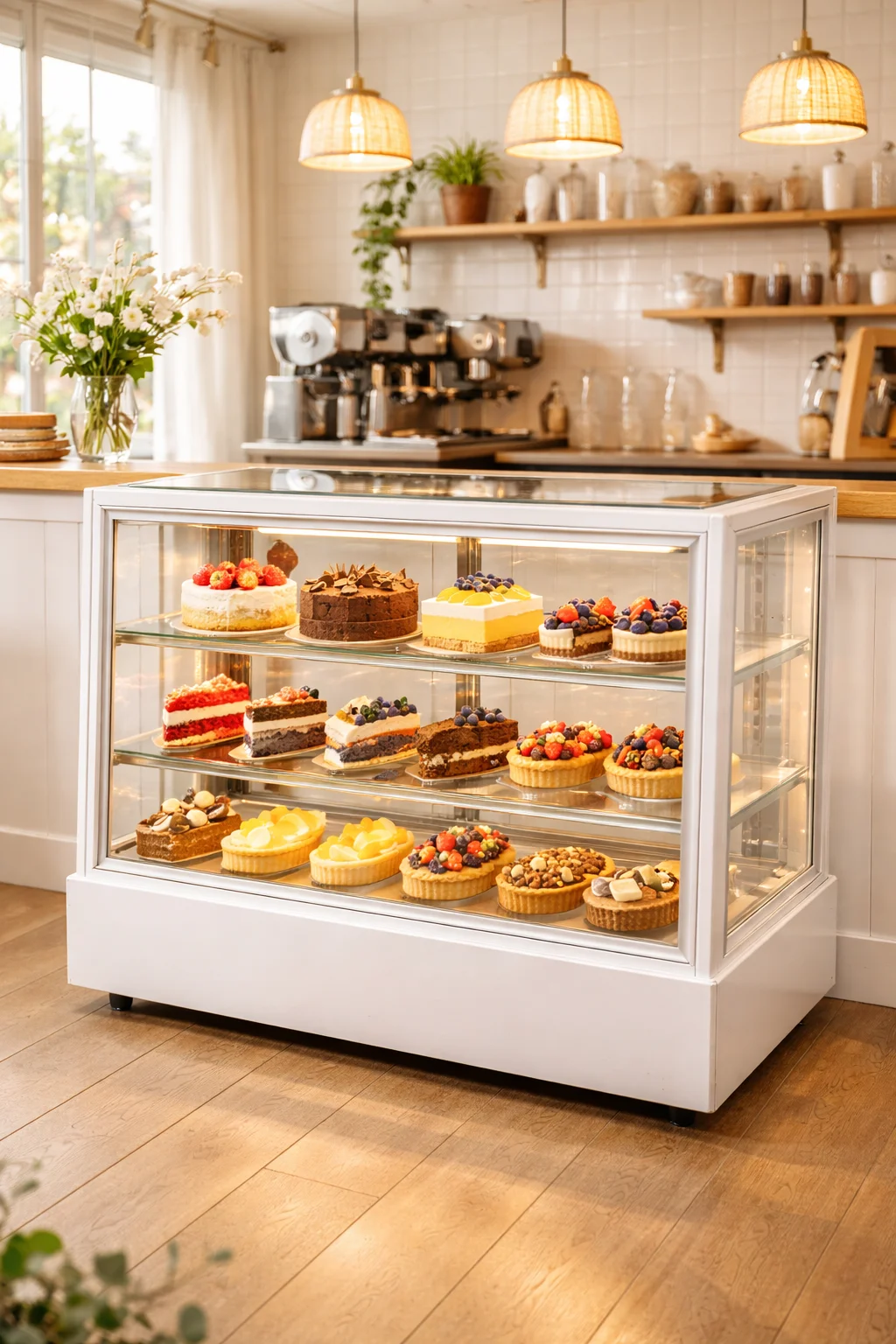 예를 들어, 층고가 높은 홀케이크 위주라면 2단 구성을, 아기자기한 마카롱이나 조각 케이크 위주라면 3단 구성을 추천드려요. 한성쇼케이스는 이런 세세한 부분을 맞춰주는 커스텀이 가능하다는 게 큰 장점이에요.