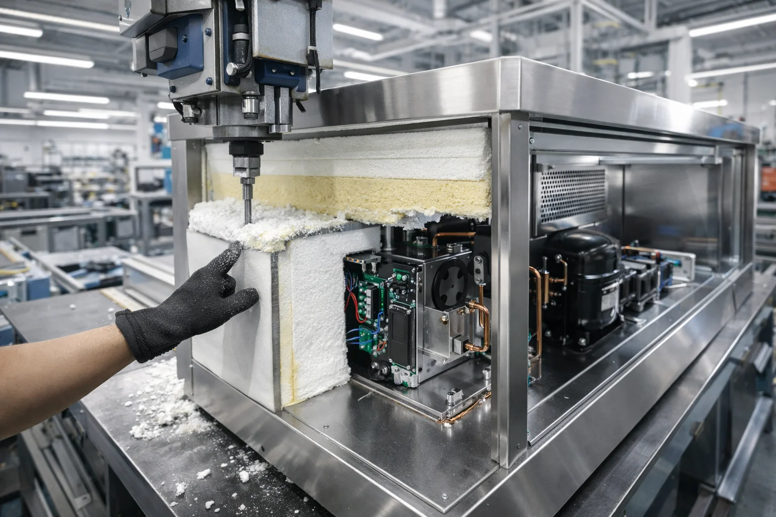 한성쇼케이스는 외부 열기를 완벽하게 차단하고 냉기는 꽉 잡아두니까 컴프레서가 덜 돌아가도 시원함이 유지돼요.