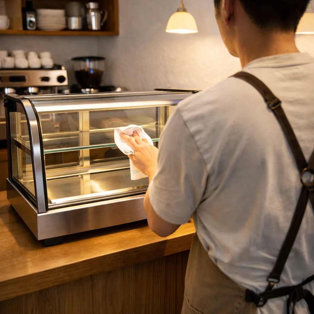장사하기도 바쁜데 기계 신경 쓰느라 시간 뺏기면 안 되잖아요. 카운터탑쇼케이스 고를 때 꼭 확인하셔야 할 게 '청소와 관리'예요. 한성 제품은 내부 선반 분리가 쉽고 코너 라운딩 처리가 잘 되어 있어서 마감 때 쓱 닦아내기만 하면 끝이에요.