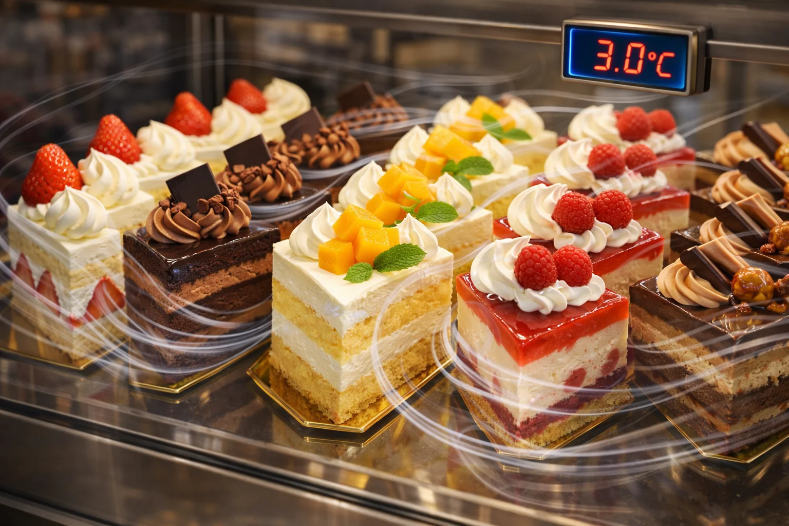 쇼케이스 안에서 생크림 케이크가 쩍쩍 갈라지거나 마카롱 꼬끄가 눅눅해진 경험, 한 번쯤 있으시죠? 그건 냉기가 한곳으로만 쏠리거나 직접적으로 디저트를 때리기 때문이에요.