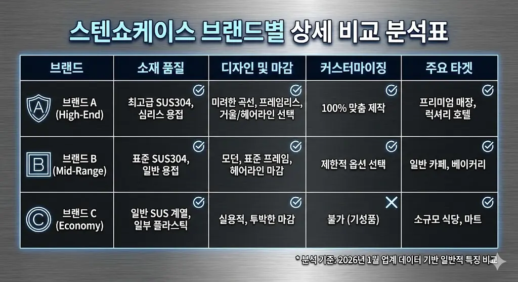 2. [업계 유일] 스텐쇼케이스 브랜드별 상세 비교 분석표