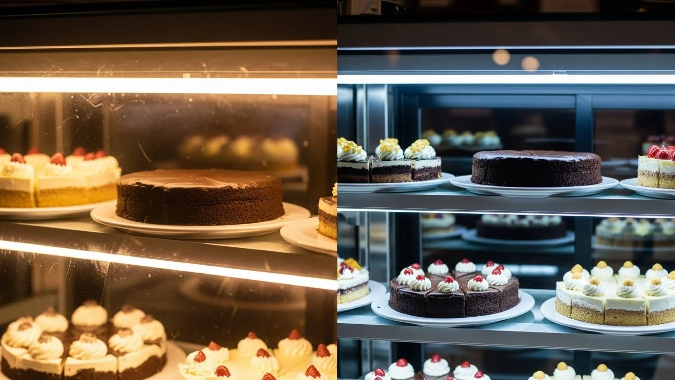 낡고 소음이 심한 중고 쇼케이스에 진열된 케이크를 보고 프리미엄 가격을 지불할 손님은 없습니다.