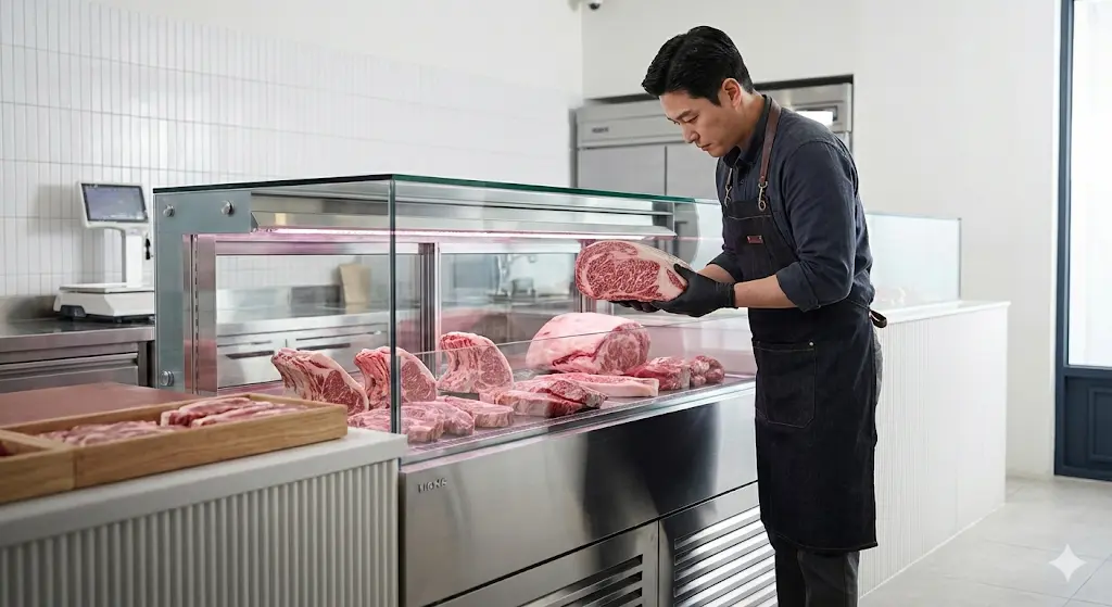 결국 정육점인테리어의 성공은 화려한 벽지나 바닥재가 아니라, 상품을 담고 있는 쇼케이스가 얼마나 매력적이고 기능적인가에 달려 있습니다.