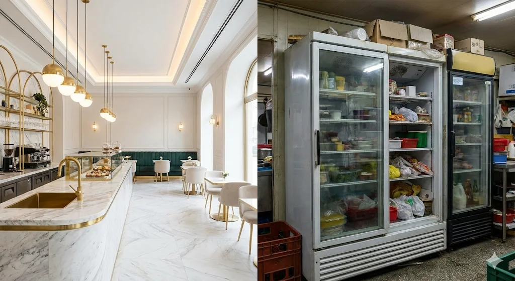오늘은 왜 저가형 기성 쇼케이스가 사장님의 비싼 인테리어를 갉아먹는 '시각적 공해'가 되는지, 그리고 고기의 품질을 최상으로 유지하는 하이엔드 장비의 차이가 무엇인지 분석해 보겠습니다.